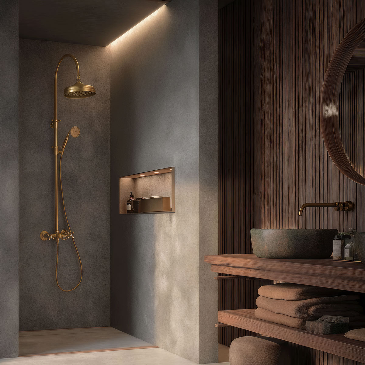 Les intérieurs en hiver ont un rythme propre à eux. Les maisons commencent à briller de l'intérieur alors que la lumière s'adoucit et que l'air ralentit. Pendant les fêtes, la chaleur, l'introspection et le souci du détail sont là où l'on trouve le luxe plutôt que l'abondance.La salle de bain, souvent négligée lors de la décoration des fêtes, est l'un des moyens les plus exquis d'ajouter ce luxe subtil à votre maison. L'ambiance entière peut être modifiée avec les bons accessoires, en particulier ceux avec des finitions or et bronze. Ils transforment une zone utilitaire en un havre de tranquillité à la fois festif et classique.Ces métaux ne demandent pas d'attention. Même les salles de bains minimalistes sont dotées d'une grandeur sereine par leur éclat, qui capte la douce lumière hivernale et équilibre les tons froids de la pierre et du carrelage.