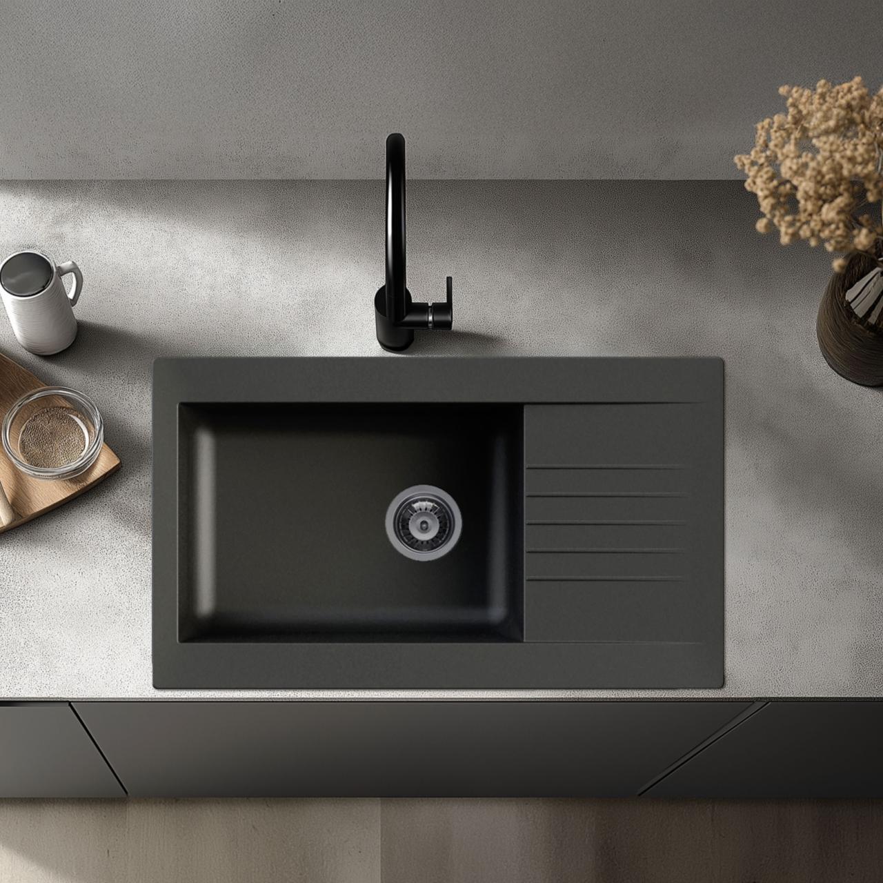 Ausmann Fibre évier noir réversible avec égouttoir en surface 86x50 cm 1208957665