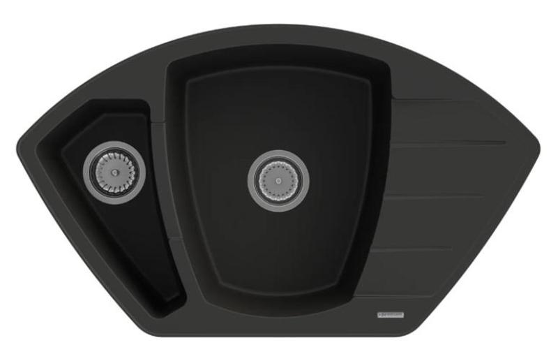 Graniteland Monte Évier d'angle en granit noir à poser 901x538mm avec bouchon en inox 1208971413