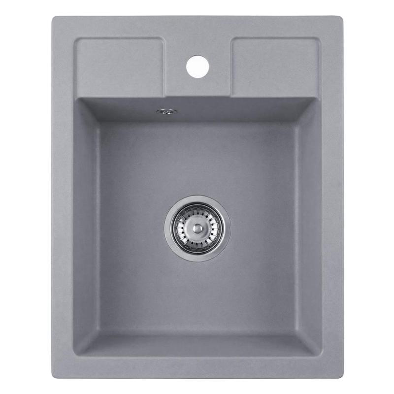 Graniteland Prest évier en granit gris Tapwing avec trou de robinet en surface 400x500mm avec bouchon en inox 1208971425