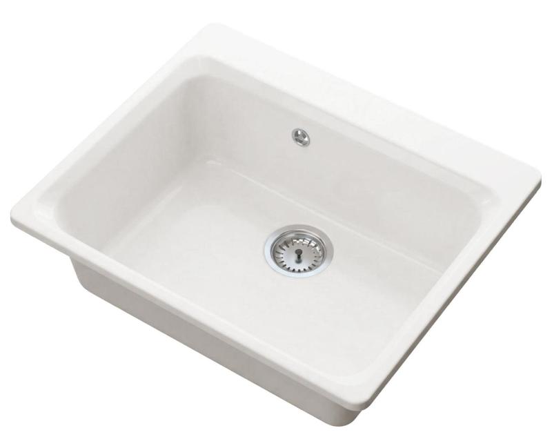 Graniteland Vastone Évier en Granit 619x522 mm Blanc Installation avec trou pour robinet et bouchon en inox 1208971445