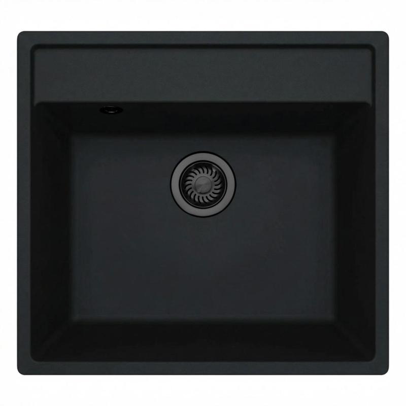 GraniteMy Bremen Évier en Granit 53x50 cm Noir - Montage en surface, sous plan et à fleur avec trou pour robinet et Plug en métal de pistolet 1208969971