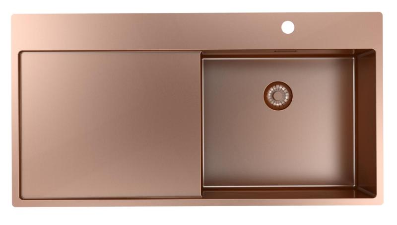 Pure.Sink Exclusivo Évier en cuivre avec égouttoir 100 x 52 cm Robinet à levier droit PEX47100RT-62