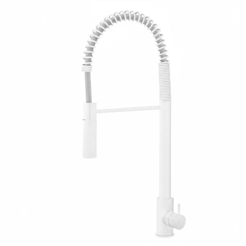 Waterevolution Flow Mitigeur de cuisine semi-professionnel blanc mat avec colonne et ressort T157BR